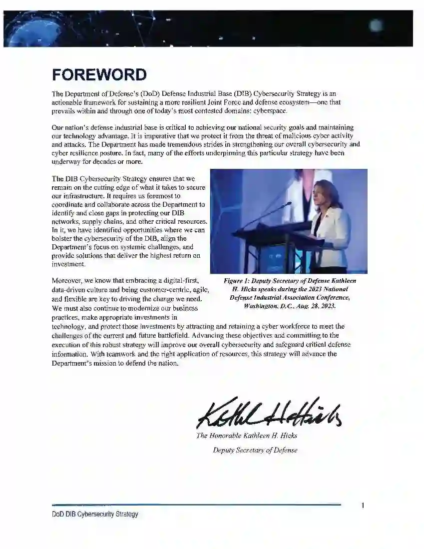美国防部3月28日正式发布《2024年国防工业基础(DIB)网络安全战略》,旨在加强美国防部与DIB合作,进一步协调和统筹资源,以提高美国国防供应商和生产商的网络安全。美国防部部副部长凯瑟琳·希克斯在该战略中指出,美国DIB对于实现国家安全目标和保持技术优势至关重要,必须保护DIB免遭恶意网络活动和攻击的威胁;该战略是一个可操作的框架,用于维持更具弹性的联合部队和国防生态系统;该战略首先要求美国防部在整个部门内进行协调和协作,以找出并弥补保护DIB网络、供应链和其他关键资源方面的差距;美国防部还必须继续实现业务实践现代化,对技术进行适当投资,并通过吸引和留住网络劳动力来保护上述投资,以应对当前和未来战场的挑战。该战略是旨在通过涵盖2024财年至2027财年的总体愿景和使命来增强DIB的网络安全和网络弹性,即“安全、有弹性、技术先进的国防工业基础”和“通过保护敏感信息、作战能力和产品完整性,确保美国作战能力的生成、可靠性和维持”。该战略与《2022年美国国防战略》《2023年美国国家网络安全战略》《2023年美国防部网络战略》《美国网络安全和基础设施安全局(CISA)网络安全战略计划》《美国防部小型企业战略》保持一致,并支持美国防部各部门和DIB承包商更全面地将美国国家标准与技术研究所(NIST)网络安全框架纳入DIB运营计划和网络安全责任的执行中。该战略概述了四项主要目标及十二项细分目的。具体包括:一是加强美国防部DIB网络安全治理结构。分项目的包括:加强跨领域网络安全问题的跨部门合作;推进DIB承包商和分包商网络安全责任法规的制定。二是增强DIB的网络安全态势。分项目的包括:评估DIB是否符合国防部的网络安全要求;改善与DIB的威胁、漏洞和网络相关情报的共享;识别DIB信息技术网络安全生态系统中的漏洞;从恶意网络活动中恢复;评估网络安全法规、政策和要求的有效性。三是在网络竞争环境中保持关键DIB功能的弹性。分期目的包括:优先考虑关键DIB生产能力的网络弹性;在政策中优先关注关键供应商和设施的网络安全。四是改善与DIB的网络安全合作。分项目的包括:利用与商业互联网、云和网络安全服务提供商的合作来增强DIB网络威胁意识;与DIB领域协调委员会合作以改善与DIB的沟通与协作。改善与DIB的双向沟通并扩大公私网络安全合作。