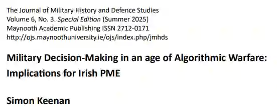 本文探讨算法战争对军事决策及专业军事教育的影响,尤其聚焦于爱尔兰国防军。人工智能与自主系统等新兴技术正改变战争形态,加速决策周期,并挑战诸如“军事决策流程”及北约“作战规划流程”等传统线性规划框架。尽管这些流程历来提供结构与可预测性,但在由数字互联与混合威胁塑造的动荡、不确定、复杂且模糊的环境中,它们日益显得不足。算法战争同时带来机遇与风险。人工智能赋能系统可自动化数据收集、分析与决策支持,但也加剧了与偏见、不透明性及自动化依赖相关的挑战。