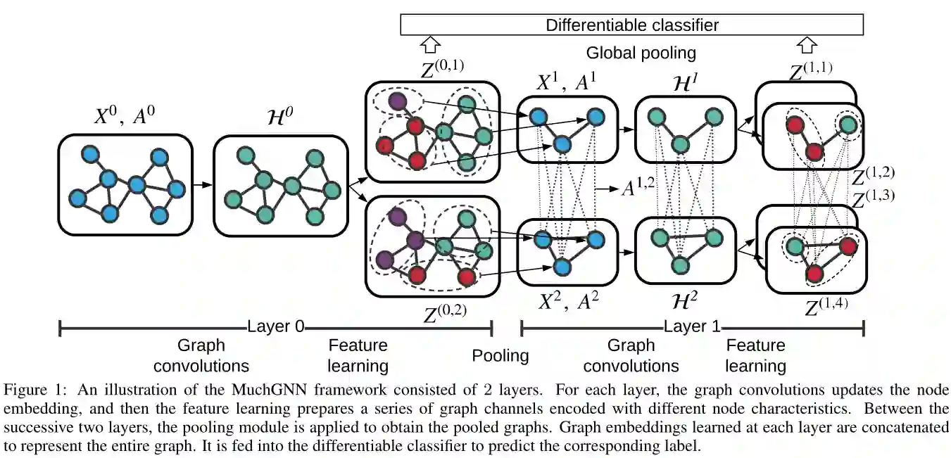 摘要: 图结构数据的分类在许多学科中已经变得越来越重要。据观察,在真实世界图中保留的隐式或显式的层次社区结构对于下游分类应用是有用的。利用分层结构的一个直接方法是利用池化算法将节点聚类到固定的组中,并逐层缩小输入图以学习池化的图。但池化收缩丢弃了图的细节,难以区分两个非同构图,固定聚类忽略了节点固有的多重特性。为了弥补网络的收缩损失和学习网络节点的各种特性,我们提出了多通道图神经网络(MuchGNN)。在卷积神经网络的基础机制的驱动下,我们定义了定制的图卷积来学习每一层的一系列图通道,并分层缩小图来编码汇集的结构。在真实数据集上的实验结果证明了MuchGNN的优越性。
