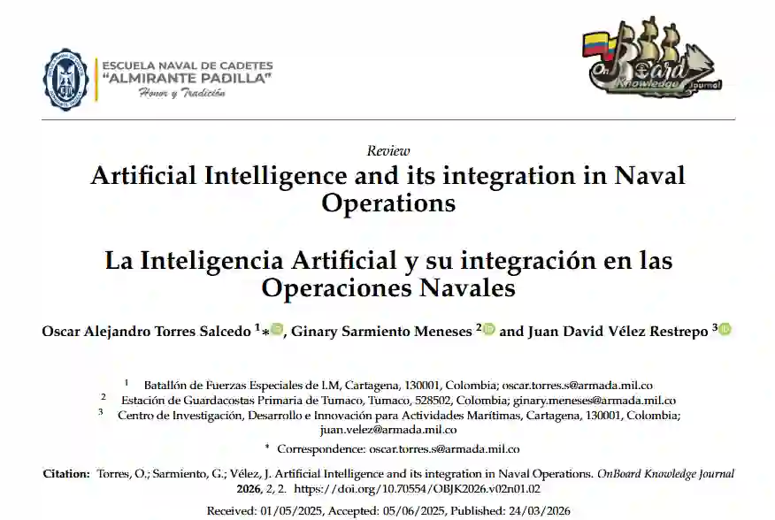 ● 2020年至2025年间发表的科学文章、技术报告和案例研究。 涉及人工智能在海军行动中应用的文件,特别是在监视、侦察和早期威胁检测方面。 提供关于人工智能作战效能经验证据或理论分析的研究。 英文和西班牙文出版物。