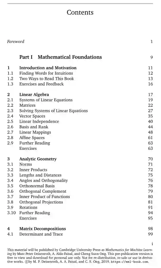 由Marc Peter Deisenroth,A Aldo Faisal和Cheng Soon Ong撰写的《机器学习数学基础》“Mathematics for Machine Learning” 最新版417页pdf版本已经放出,作者表示撰写这本书旨在激励人们学习数学概念。这本书并不打算涵盖前沿的机器学习技术,因为已经有很多书这样做了。相反,作者的目标是通过该书提供阅读其他书籍所需的数学基础。这本书分为两部分:数学基础知识和使用数学基础知识进行机器学习算法示例。值得初学者收藏和学习!