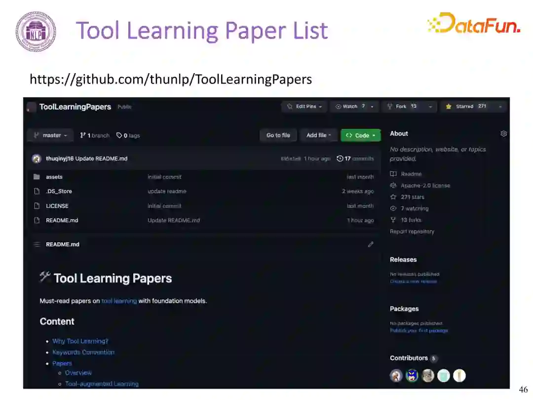 3. 工具学习必读 Paper List****工具学习论文列表:https://github.com/thunlp/ToolLearningPapers 04