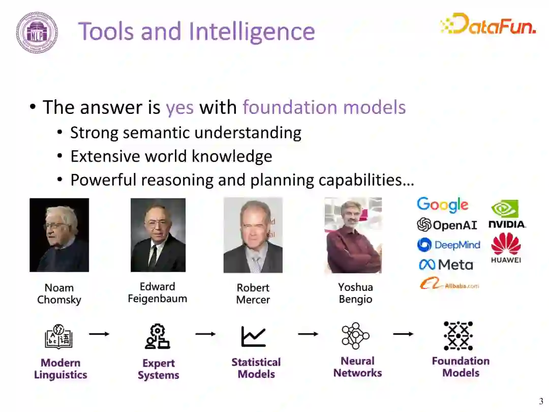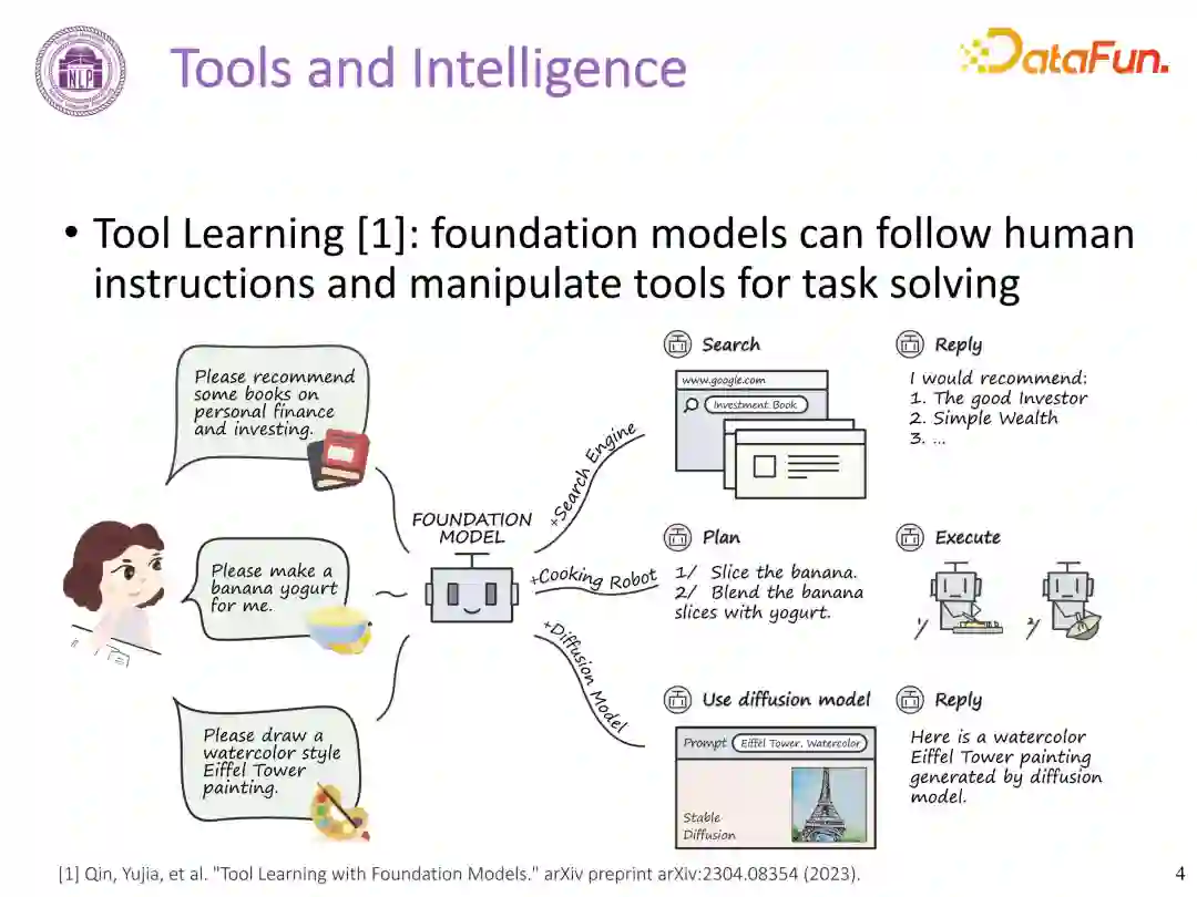 **1. ****工具与智能(Tools and Intelligence)******工具是人类能力的延伸,旨在提高生产力和效率,以及解决问题。人与动物本质区别在于工具,人可以非常熟练地创造和使用工具。纵观历史,人类一直是工具发明和操作的主要推动者。GPT-4 等基础模型(Foundation Model)展示了其在理解人类意图、自动化复杂过程、解读多模态信息等方面的巨大潜力。同时也引发了如下问题:**人工智能是否可以像人类一样使用工具?******基于大模型、基础模型(Foundation Model),上述问题的回答是 **Yes!**主要原因如下: