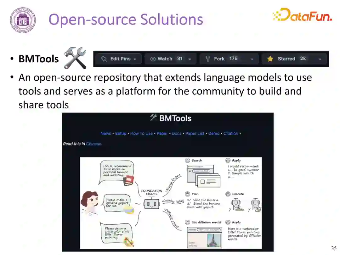 为解决这个痛点,我们推出了 BMTools 工具学习包,一个基于语言模型的开源可扩展工具学习平台。BMTools 工具包:https://github.com/OpenBMB/BMTools ****