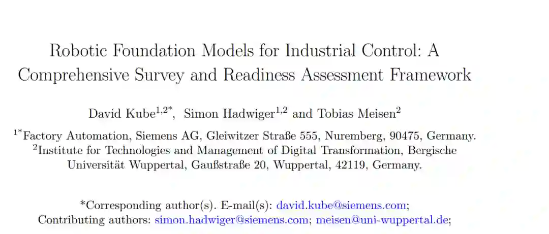 关键词: 机器人基础模型;工业机器人;工业成熟度评估;机器人操纵;工业人工智能;协作机器人学