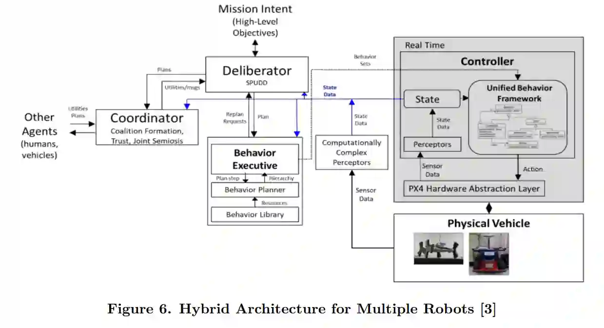 技术进步所带来的进攻技术为对手提供了威胁联合部队和盟军作战优势的机会。要与这些新方法作斗争,就必须不断快速发展自己的 "改变游戏规则 "的技术。通过重点发展无人系统和自主性,空军可以努力保持其技术优势。此外,创建一个强大的框架,能够测试和评估定义自主性的原则,从而探索未来的能力。本研究介绍了反应/慎思混合架构的发展情况,该架构将允许对任务、认知和同伴灵活性原则进行测试。具体来说,这项研究探索了多机器人系统中的同伴灵活性,以多机器人混合架构(HAMR)作为框架基础,解决定位问题。为完成这一任务,结合车辆感知和导航工具对运行环境进行推断。然后,这些推论被用于构建因子图,而定位的核心算法就是在因子图的基础上实施 iSAM2,这是一种高性能的增量矩阵因式分解方法。统一行为框架(UBF)是该框架中单个车辆控制的一个关键组件,它是一种基于行为的控制架构,使用模块化仲裁技术生成动作,从而实现执行器控制。此外,还通过使用容器对世界模型进行分隔,以尽量减少通信开销并简化状态信息。该平台的设计采用了多态方法,以实现模块化和鲁棒性,从而促进未来的发展。