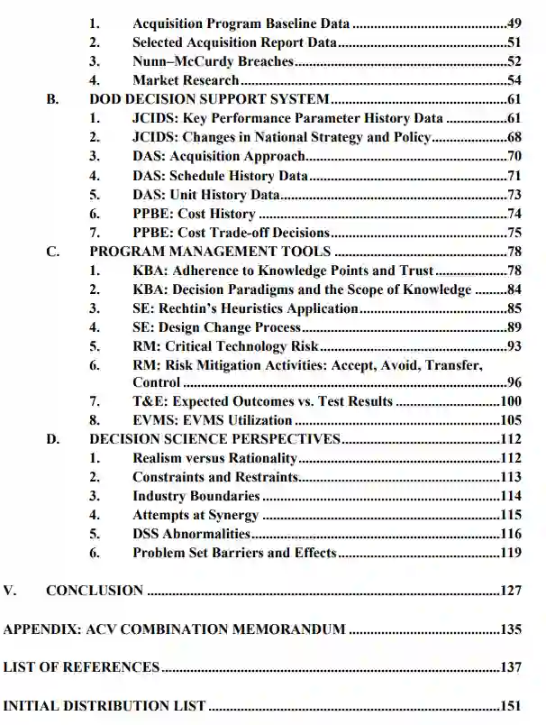 EFV和ACV项目在以下关键国防采购领域的比较:(1)强制性要求,(2)美国防部决策支持系统(DSS)模型,(3)项目管理(PM)工具,和(4)决策科学原则。