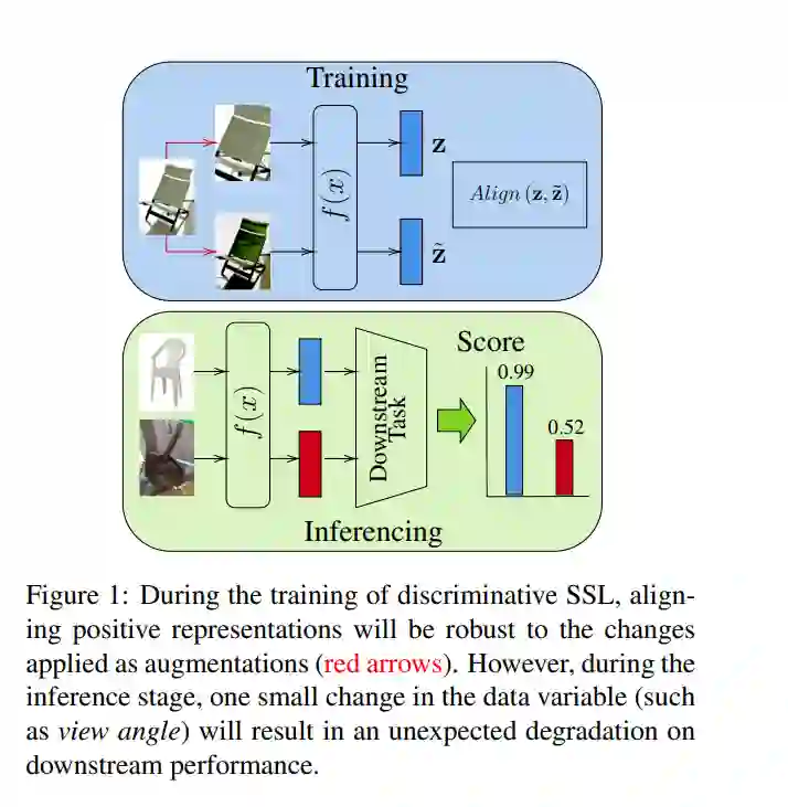 近年来,判别性自监督方法在推进各种视觉任务方面取得了显著进展。学习对数据失真/增强鲁棒的数据编码器的核心思想虽然简单,但非常有效。尽管许多研究已经证明了各种学习方法的实证成功,但所学到的表示可能表现出不稳定性,从而妨碍了下游性能。在本研究中,我们从因果关系的角度分析判别性自监督方法,以解释这些不稳定的行为,并提出解决方案。我们的方法受到先前工作的启发,这些工作实证地证明了判别性自监督方法在一定程度上解混真实因果源的能力。与之前关于因果性强化表示学习的工作不同,我们并不在训练过程中应用我们的解决方案,而是在推理过程中应用,以提高时间效率。通过在受控的图像数据集和真实的图像数据集上的实验,我们展示了我们提出的解决方案,即使用受控的合成数据对线性变换进行调整,可以有效地解决这些问题。