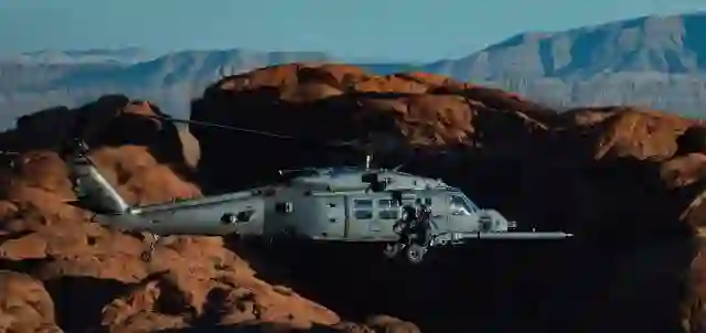 图:一架空军 HH-60W Jolly Green II 从内华达州内利斯空军基地起飞,飞越火焰谷。空军最近宣布将 HH-60W 人员救援直升机的初始采购数量从 113 架减少到 75 架,这使人们对空军 CSAR 任务的优先次序产生了疑问。美国空军