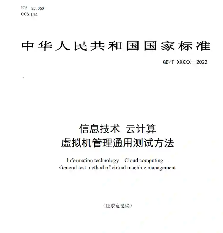 本标准针对信息技术云计算领域虚拟机管理平台通用测试过程中针对不同 虚拟机管理平台测试方法不规范的问题,规定了信息技术云计算虚拟机资源管理 平台通用测试方法。本标准适用于在信息技术云计算中对虚拟机管理平台的通用测试。主要内容包括:a)术语和定义 解释说明虚拟机资源管理平台通用测试方法所涉及的相关专业术语。b)通用测试环境 明确虚拟机管理平台的通用测试环境。c)虚拟机资源管理平台通用测试方法 虚拟机管理平台为实现其业务能力需对虚拟机的各种功能进行管理,实现的 管理功能包括:基本管理、生命周期管理、配置与调度管理、监控与告警管理、 可用性和可靠性管理,安全性管理以及扩展技术要求等。虚拟机资源管理平台通 用测试方法主要提供的是对虚拟机基本管理、生命周期管理、配置与调度管理、 监控与告警管理、可用性和可靠性管理,以及虚拟机性能、压力、容错性和功耗 等进行测试的完整测试步骤。