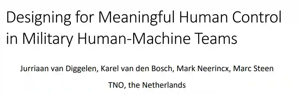 本章从军事人机协同(HMT)的角度出发,提出了分析、设计和评估国防技术的有意义人机控制(MHC)的方法。方法基于三个原则。首先,MHC 应被视为指导分析、设计和评估所有阶段的核心目标。其次,MHC 影响社会技术系统的所有部分,包括人类、机器、人工智能、交互和环境。最后,移动健康中心应被视为一种跨越较长时期的属性,既包括事先控制,也包括多方参与者的实时控制。为了描述实现 MHC 的宏观设计方案,我们提出了各种团队设计模式。此外,还介绍了一个案例研究,在该案例研究中,将其中一些方法应用于设想 HMT,让机器人和士兵参与到军事背景下的搜救任务中。