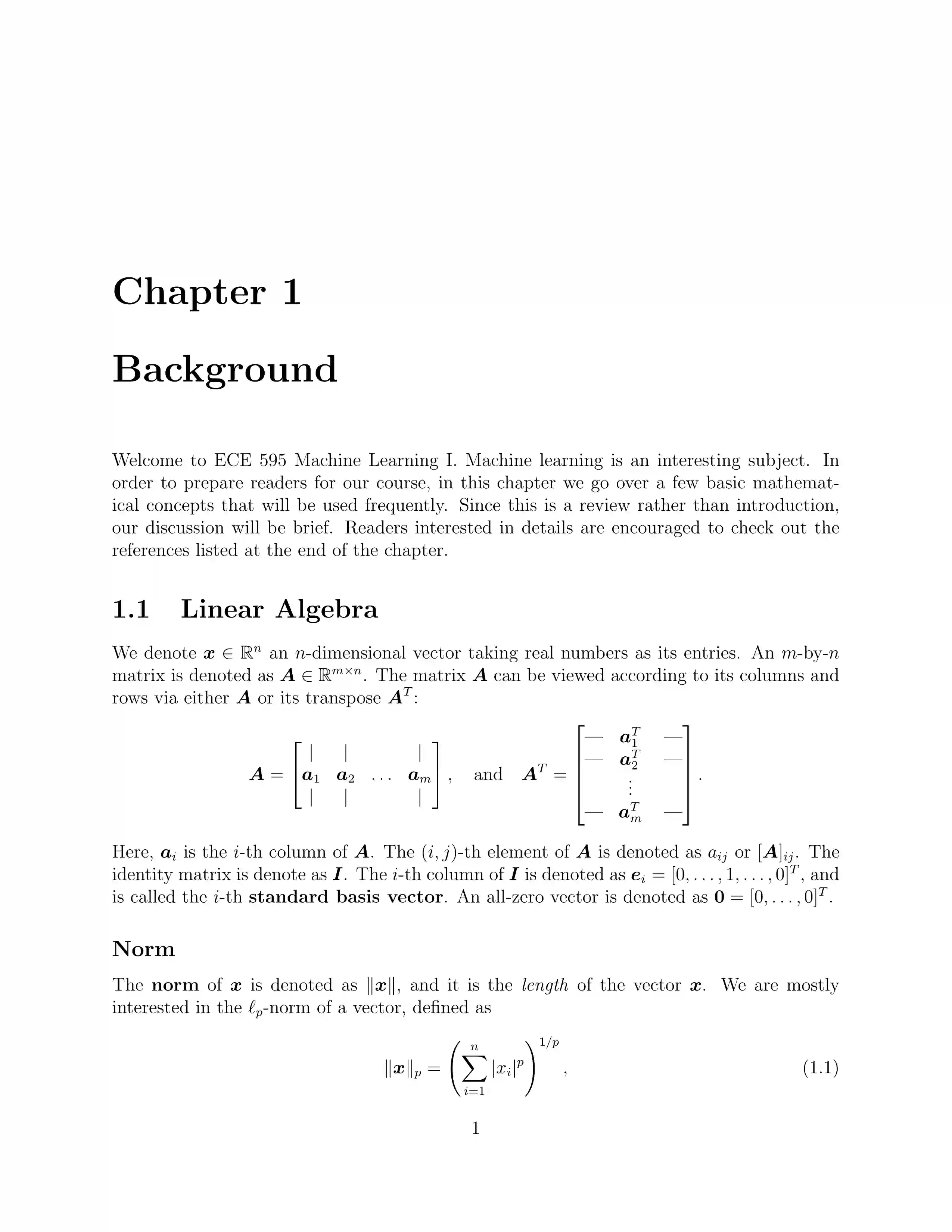 数学基础:矩阵、向量、Lp范数、范数的几何、对称性、正确定性、特征分解。无约束最优化,graident下降法,凸函数,拉格朗日乘子,线性最小二乘法。概率空间,随机变量,联合分布,多维高斯。