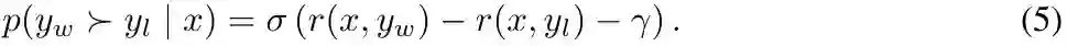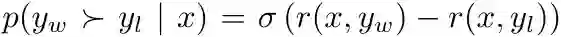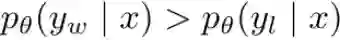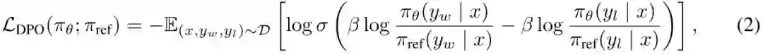 其中 (x, y_w, y_l) 是由来自偏好数据集 D 的 prompt、获胜响应和失败响应构成的偏好对。