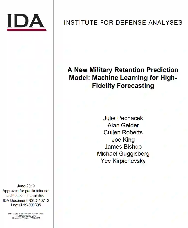 改进对军事人员保留的预测可以在多个层面上帮助美国防部(DOD)领导人和部队管理者。发展一支致命的、高效的和准备就绪的部队,需要领导人在一个详细的水平上预测即将发生的军事人员规模和形态的变化。为了支持负责人事和战备的美国防部副部长办公室,IDA开发了持续预测模型(RPM)。RPM使用机器学习算法和广泛的人事记录来捕捉服务特征中丰富的互动,并预测个别军人何时会从军队离职。RPM的个人层面的预测可以按任何需要的人口子集进行汇总,包括职业领域、队列、单位或人口统计学。