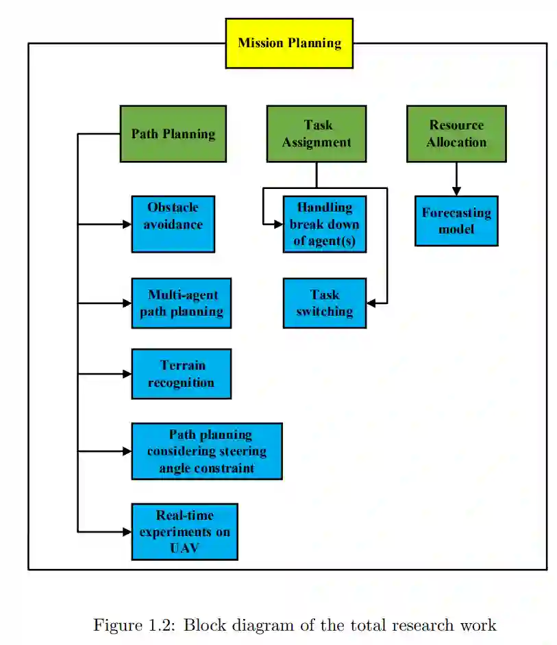 多智能体自主系统与实时规划有关的研究日益增多,本论文就是对这一研究的贡献。多年来,由移动智能体组成的自主系统已被证明是用于探索(如太空机器人)、军事(如搜救行动)和工业应用(如谷歌自动驾驶汽车)的高效、稳健和多功能工具。随着自主技术日趋成熟,部署多个自主智能体来完成复杂的任务在许多不同的应用中都受到了广泛关注。如果单个智能体可以完成一项任务,那么多个智能体就有可能更快地完成任务。然而,引入多个智能体会使整个系统变得更加复杂,因为现在的智能体需要能够有效地相互协作。在没有有效协作机制的情况下随机引入智能体,可能会对生产率产生负面影响。