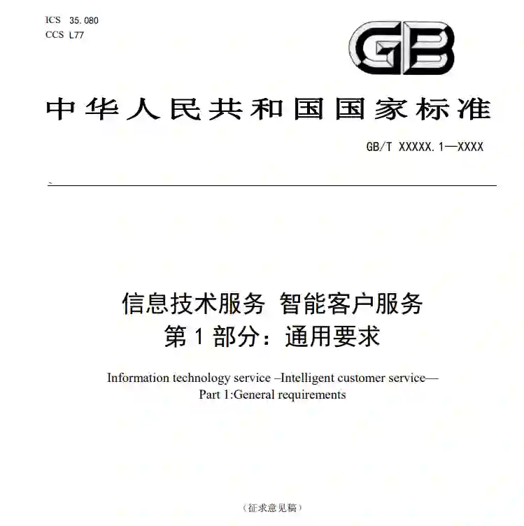 **《信息技术服务 智能客户服务 第1部分:通用要求》**本文件确立了智能客户服务能力模型,规定了智能客户服务体系建设能力要求。本文件适用于具有建设智能客户服务体系需求的各类组织和机构。