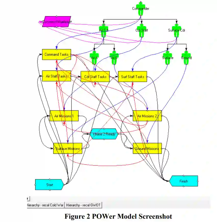 通过这种技术开发的基于代理的组织模型在大约三十年的时间里也经过了数十次验证,能够忠实地反映对应的真实世界组织的结构、行为和绩效(例如,参见 Levitt, 2004)。此外,几年来,已将同样的计算建模和仿真技术应用到军事领域(例如,见 Nissen, 2007),以研究联合特遣部队、分布式作战、计算机网络行动和其他任务,这些任务反映了日益普遍的联合和联盟努力。