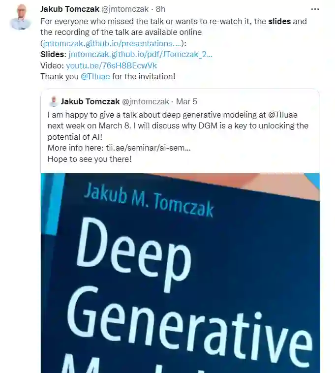 深度学习可以在图像或音频分类等任务中实现最先进的结果。然而,基于深度学习的预测器很容易被非分布数据或噪声例子所欺骗。在这次演讲中,我们将讨论一个可能的解决方案,即深度生成建模,它是深度学习和概率建模的结合。我们将从信息论的动机开始,信息论自然地将学习联合分布作为人工智能系统学习的一个关键问题。接下来,我们将概述在对象(例如,图像)上建模分布的各种方法。更具体地说,我们将主要关注潜在变量模型(例如,变分自动编码器,基于扩散的深度生成模型,基于流的模型)。最后,我们指出了未来可能的研究方向。