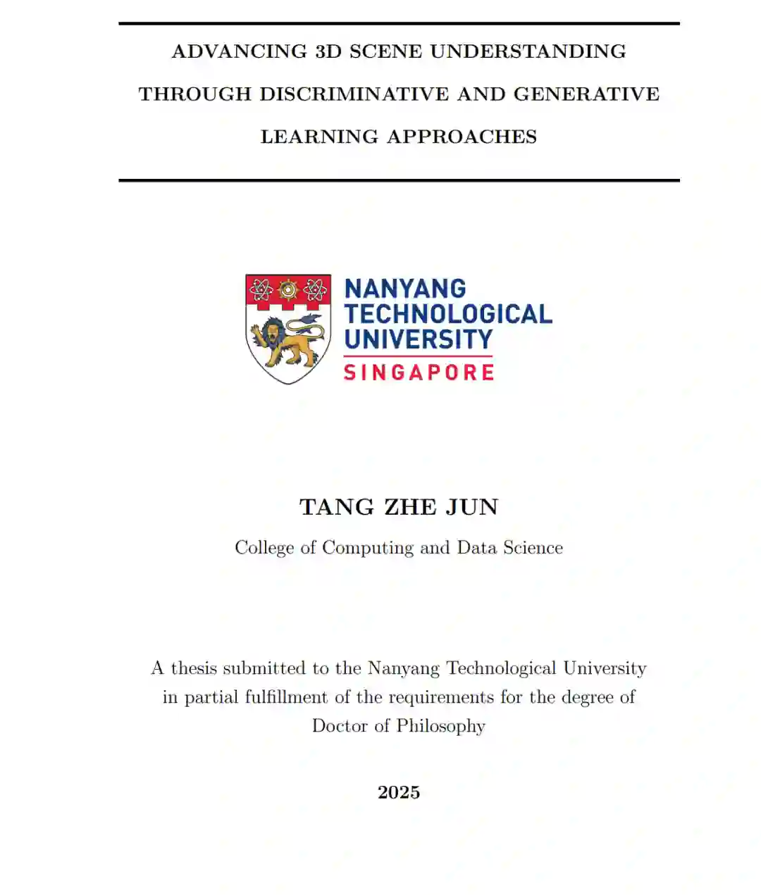 本论文探讨了计算机视觉在赋予计算机通用智能方面的关键作用,重点关注如何开发算法,使机器能够感知并理解其三维环境。研究分为两个部分:判别式学习方法与生成式学习方法,并通过三个核心章节构建三维场景理解的整体框架。