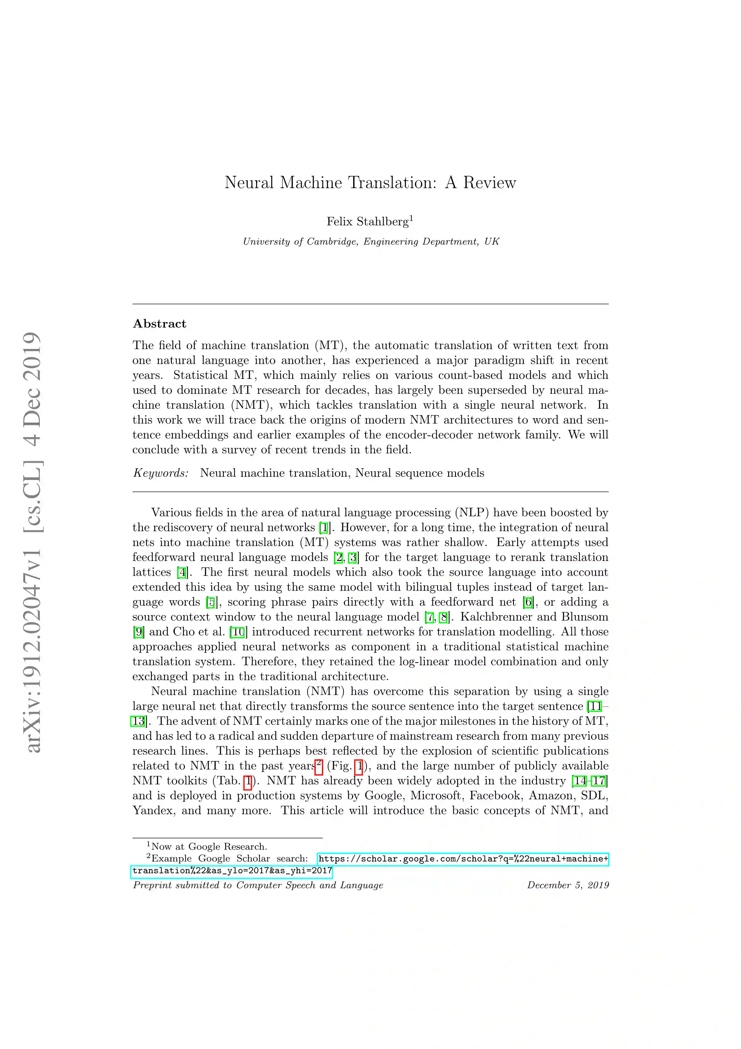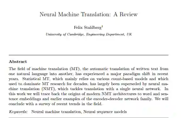 题目: Neural Machine Translation: A Review