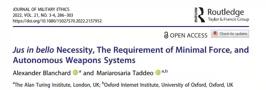 这篇文章重点讨论了战时法原则在指导自主武器系统使用方面的必要性。在分析之初,先说明必要性原则包含正义战争理论中的最低限度的武力要求,然后强调现有的关于自主武器系统的工作中缺乏这一原则。忽视这一原则意味着忽视了战斗人员在战争时期对彼此的义务。本文认为,最低限度的武力要求是考虑道德使用武力的一个重要条件。特别是,区分了使用武力的致命性和非致命性目的,并介绍了非致命性AWS的前景,然后回顾了AWS在非致命性使用方面所带来的一些挑战。这些挑战出现在AWS产生不可预测的结果,影响了战斗人员为确保其行动符合最低武力要求所需的态势感知。最后,呼吁进一步研究AWS的非致命性使用的伦理影响,作为对评估AWS的道德可允许性的必要贡献。