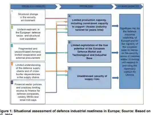 本研究试图为填补这一知识空白做出贡献。本节对欧洲很大程度上被忽视的选定战备要素进行态势评估。利用美国国防部新近增强的战略战备框架,审视了针对持久冲突与战争的国防工业战备、部队机动战备以及可持续的全社会韧性。该框架有助于构建欧洲的战略战备概念,它将当前对准备状态的理解延伸至盲点领域。态势评估有助于决策者理解战略选择对未来战备水平的全面累积影响,这对欧洲的准备状态和战备水平至关重要。