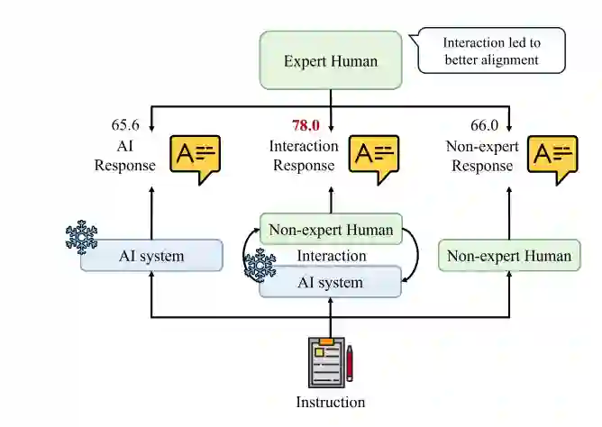 夹击是一种方法,用来评估AI系统在较低能力(非专家)和较高能力(专家)人类之间的表现,模拟有限人类监督的场景(Cotra, 2021; Bowman et al., 2022)。