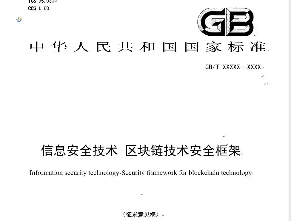 《信息安全技术区块链技术安全框架》国家标准,本标准本文件提出了区块链技术安全框架,描述了框架的层次结构以及区块链各参与角色的安全视图。本文件适用于指导基于区块链技术的信息系统进行安全风险防范,特别是联盟链系统,也适用于指导指导所有区块链参与者在区块链设计开发、研制、部署和运行的全过程中进行整体规划、安全框架设计、及安全性评你
