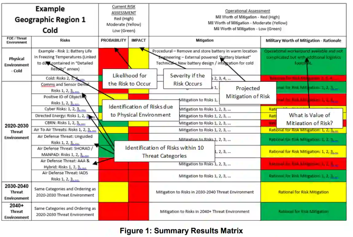 北约科技组织(STO)应用车辆技术(AVT)329 "NexGen旋翼机对军事行动的影响 "评估了2035+时间框架内适用科学技术(S&T)发展对军事行动的潜在影响。对预计的未来任务进行的两次作战分析(OA)评估时,评估采用了基于风险的主题专家判断。