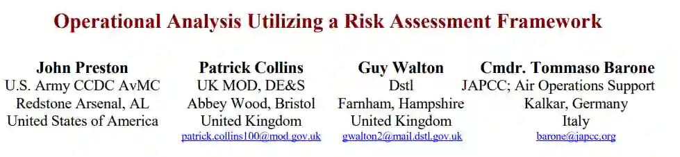 利用定义的任务小插曲,参与评估的主题专家确定了利用当前北约军用直升机能力实现各项任务的风险。然后评估每个风险发生的可能性和对实现任务的影响。对于每个风险,确定的缓解措施包括技术的应用、战术的改变和其他措施。随后对确定的风险缓解措施的行动影响进行了评估,以确定其军事价值。