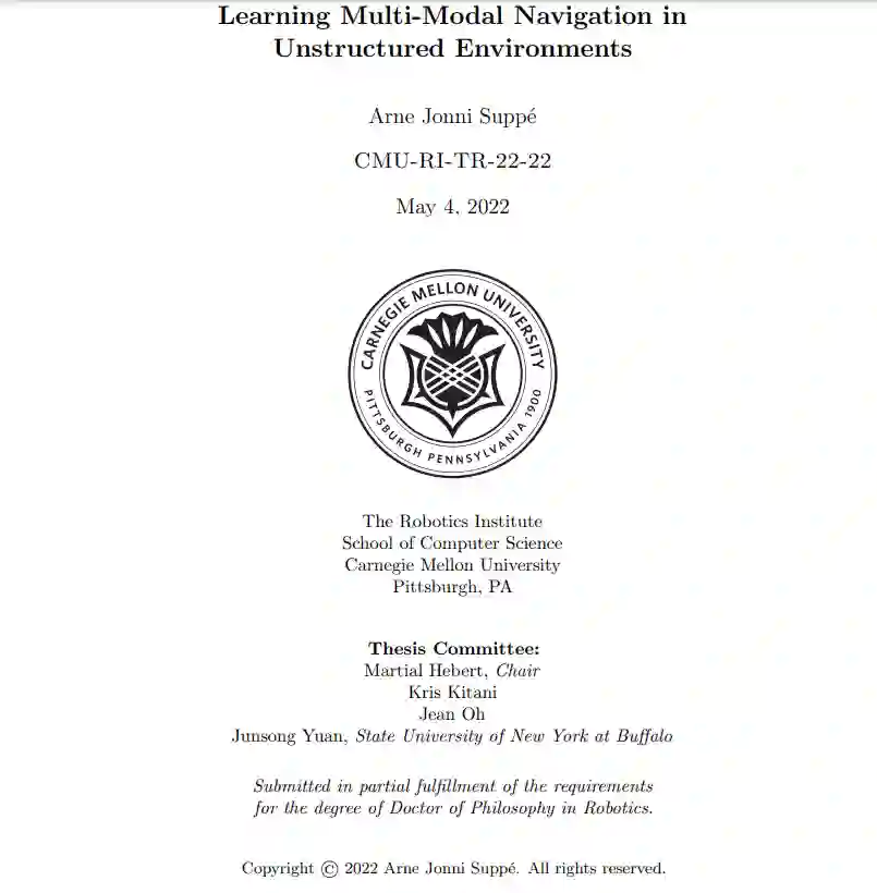 一个机器人要想在非结构化的室外环境中与人类高效合作,就必须将指令从操作者直观的模态转化为行动。机器人必须能够像人类一样感知世界,这样机器人所采取的行动才能反映自然语言和人类感知的细微差别。传统上,导航系统结合了个人感知、语言处理和规划块,这些块通常是根据不同的性能规格单独训练的。它们使用限制性接口进行通信以简化开发(即,具有离散属性的点对象和有限的命令语言),但这也限制了一个模块可以传递给另一个模块的信息。