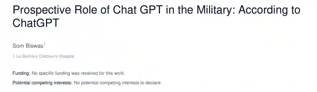 关键词:ChatGPT、人工智能、AI、军事、战斗、战场、战争。 背景
