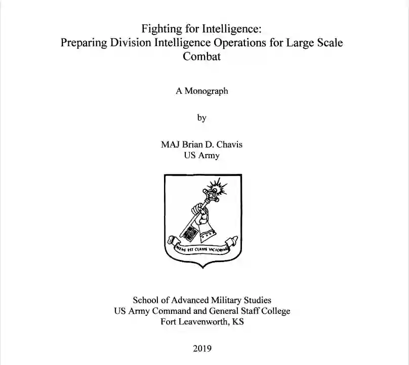 第三部分研究了G-2师目前是如何为LSCO进行训练的,以便在大规模战斗之前找出目前训练趋势所不能解决的能力差距。第三节还推荐了一个组织结构,使师级情报部门能够更好地支持大规模的地面作战行动,并使用基于理论要求的筛选标准来评估这一建议,以确保中央情报局的生存能力和完成师级情报行动的要求。