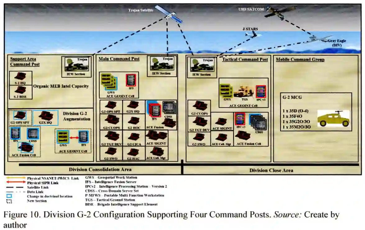 美国陆军理论讨论了一个师能够建立的五种类型的指挥所:主指挥所(MCP)、战术指挥所(TAC)、机动指挥组、支援区指挥所(SACP)和早期进入指挥所(EECP)。每个指挥所执行不同的功能,从而使任务指挥更加有效。按照目前陆军修订的组织和装备表(MTOE)的规定,师级情报部门只被授权在MCP和TAC中操作人员和装备。不能假设在LSCO环境中不使用其他CPs。陆军各师必须确保其情报部门的结构能够在不断受到攻击威胁的多个中心点有效运作,需要有快速转移的能力才能生存。
