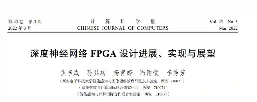 类脑芯片(brain-inspired chip)是仿照人类大 脑的信息处理方式,打破了存储和计算分离的架构, 实现数据并行传送、分布式处理的低功耗芯片. 在 基于冯诺依曼结构的计算芯片中,计算模块和存储 模块分离处理从而引入了延时及功耗浪费. 类脑芯 片侧重于仿照人类大脑神经元模型及其信息处理的 机制,利用扁平化的设计结构,从而在降低能耗的 前提下高效地完成计算任务. 在人工智能火热的时 代,各国政府、大学、公司纷纷投入到类脑芯片的 研究当中,其中典型的有 IBM 的 TrueNorth、英特 尔的 Loihi、高通的 Zeroth、清华大学的天机芯等. 目前,深度神经网络芯片正在不断研究开发中, 每种芯片均是针对一定的问题而设计的. 因此,不同 的芯片有其独特的优势和不足. 通过上述对不同芯 片的描述,我们可以了解到相比 GPU,FPGA 具有更 强的计算能力和较低的功耗. 相比 ASIC 和 SoC, FPGA 具有更低的设计成本和灵活的可编程性. 相比 类脑芯片,FPGA 的开发设计更简单. 综合当前深度 神经网络芯片的特性可知,FPGA 的设计性能更适合 应用于深度神经网络在普通领域的开发和应用. 随着 FPGA 在深度神经网络领域的应用,相关 学者对其进行了分析和整理. 文献[76]对基于 FPGA 的卷积神经网络加速过程进行分析总结. 文献[77] 汇总了目前 FPGA 用于卷积神经网络加速的发展研 究现状. 文献[78]对目前 FPGA 用于神经网络的发 展现状进行总结,并提出所面临的问题和挑战. 文 献[79]总结了 FPGA 的设计理论及其用于神经网络 加速的技术原理和实现方法. 文献[80]分别介绍了 人工神经网络和 FPGA 进行介绍的发展,同时总结 了 FPGA 用于人工神经网络的发展和挑战. 本文从 FPGA 应用于深度神经网络的设计原理、型号选择、 应用领域、加速器及具体加速原理、实验评估指标 到最后的 FPGA 应用与深度神经网络的影响因素等 方面进行归纳总结,对 FPGA 用于神经网络加速进 行全面的介绍,为读者提供理论和实践指导.