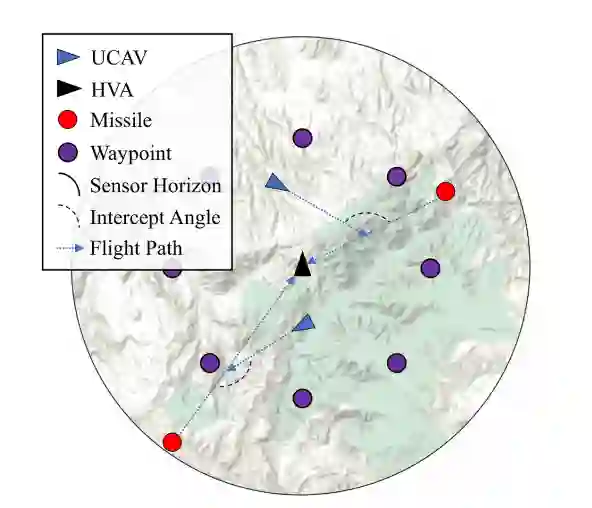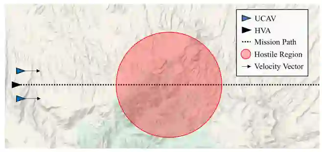 图 1. 假想的 GABMP 场景,描绘了穿越敌对领土的固定 HVA 任务路径