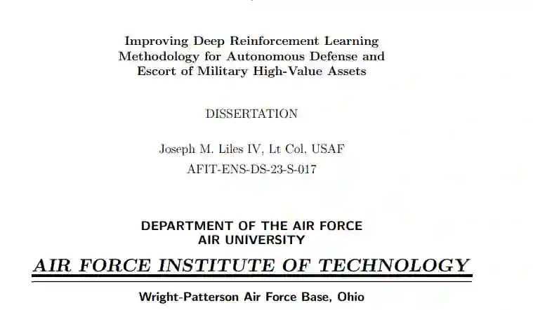 本文探讨了机器学习在自主无人战斗飞行器(AUCAV)控制中的应用。特别是,本研究将深度强化学习方法应用于防御性空战场景,在该场景中,AUCAV 机群保护军事高价值资产 (HVA),该资产要么是静止的(如在空军基地防御场景中),要么是快速移动的(如在涉及护送货运飞机或指挥控制飞机的场景中)。通过采用马尔可夫决策过程、近似动态规划算法和用于价值函数近似的深度神经网络,一系列空战管理场景、原始模拟环境和一系列设计的计算实验为高质量决策策略的近似提供了支持。三项连续的研究探索了新型模型和相应的方法论,以提高数学模型的准确性,提高计算效率,或更准确地评估复杂问题的解决方案质量,在这些问题中,最优解决方案的计算难以实现。对政策有效性和特定政策行为的深入分析为战术、技术和程序的完善提供了信息,并使能力评估更加准确和量化,从而为所有相关系统的需求开发和采购计划提供支持。