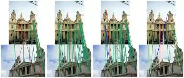 通常,使用SfM重建3D场景首先要确定图像的哪些部分捕获了场景的相同物理点,例如窗口的角点。这是使用局部特征(即可以在不同视图中可靠识别的图像中的显着位置)实现的。它们包含简短的描述向量(模型表示),这些向量捕获了感兴趣点周围的外观。通过比较这些描述符,可以在两个或多个图像上的图像位置的像素坐标之间建立可能的对应关系,并通过三角测量来恢复点的3D位置。然后可以共同估计从中捕获图像的姿势以及所观察到的物理点的3D位置(例如,确定窗口的角相对于相机位置的位置)。在不同图像和点上执行此操作可以重建整个建筑物。