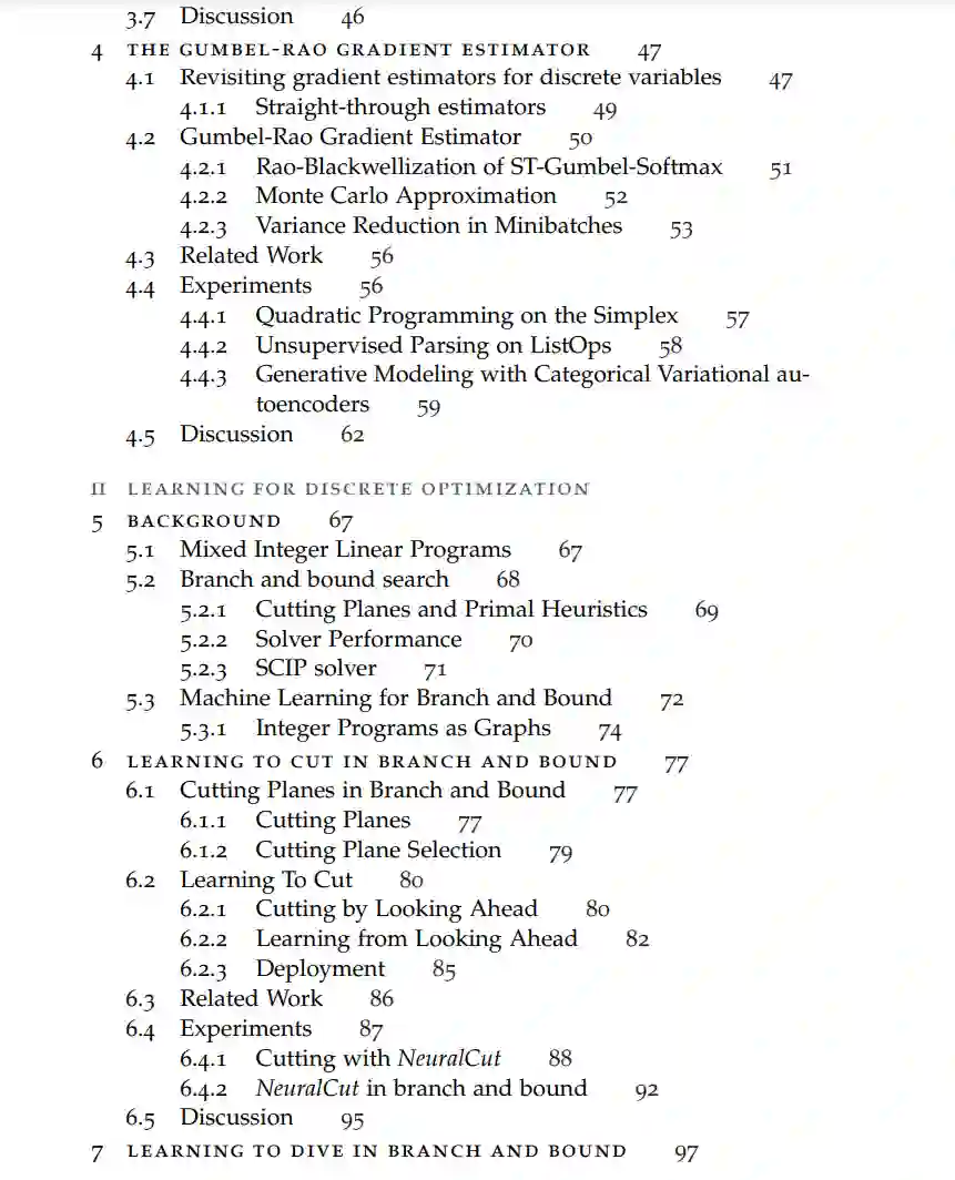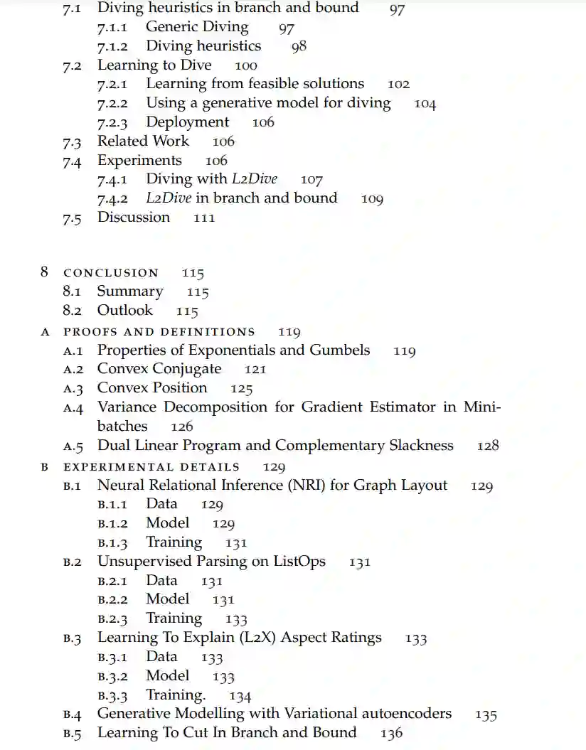 https://www.research-collection.ethz.ch/handle/20.500.11850/629004 鉴于机器学习和离散优化的互补优缺点,很自然地会问到这两个领域的方法在多大程度上可以有益地结合起来。这是我们在这篇论文中提出的问题,并通过展示用于和用于离散优化的学习方法来肯定地回答这个问题。