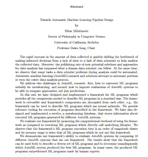 主题: Towards Automatic Machine Learning Pipeline Design