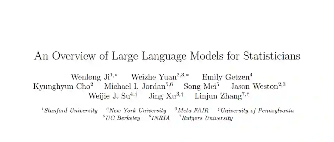 大型语言模型(LLMs)已成为人工智能(AI)领域的变革性工具,在从文本生成到对话再到复杂推理的多样化任务中展现了卓越的能力。随着这些模型的规模和复杂性的增加,一个重要问题随之而来:在LLMs时代,统计学家如何在指导大规模AI模型的设计和部署中发挥作用?从本质上讲,语言模型是为即将出现的单词或单词序列分配概率的模型。具体而言,语言模型f旨在学习一种映射,该映射将一系列标记x[T] = x1, x2, · · · , xT作为输入,并输出下一个标记xT +1的标记词汇表上的概率向量f(x[T])。虽然公式简单,但当应用于大量文本语料库时,这种概率方法使LLMs能够捕捉复杂的模式,包括那些传统上属于语法、语义和逻辑领域的模式。例如,给定诸如“写一个引人入胜的短篇故事”或“让我们一步一步地思考”这样的指令,LLMs可以动态调整其响应以遵循给定的指令,生成与用户意图一致的输出。这种指令跟随能力是广泛训练多样化数据集并结合微调技术以对齐模型输出与用户偏好的结果。尽管这些工作大多受到统计原理和优化理论原理的启发,但在问题公式化和针对LLMs使用的特定架构和数据收集协议的统计程序设计之间仍存在巨大差距。LLM对用户指令的响应示例:创意写作用户:写一个关于一群统计学家去远足的引人入胜的短篇故事。为统计学家提供详细的背景,并描述他们在旅途中遇到的乐趣和挑战。融入丰富的细节,使故事栩栩如生。LLM:标题:大数定律的踪迹这一切始于统计系的一个玩笑。每周三,在每周研讨会结束后,一群教师和研究生会聚集在公共休息室,分享咖啡、抱怨,偶尔还会在餐巾纸上涂写证明草图。一个特别沉闷的冬日下午,Strawderman教授叹了口气,说道:“你们知道吗,我们一直在分析数据中的不确定性,但我们上一次面对真正的不确定性是什么时候?比如,在大自然中?”...LLM对概率问题的响应示例:链式思维提示用户:您是解决高级概率论问题的专家。请仔细逐步解决以下问题,确保解释每一步的计算和假设:当掷两个公平的六面骰子时,至少得到一个6的概率是多少?让我们一步一步地思考。