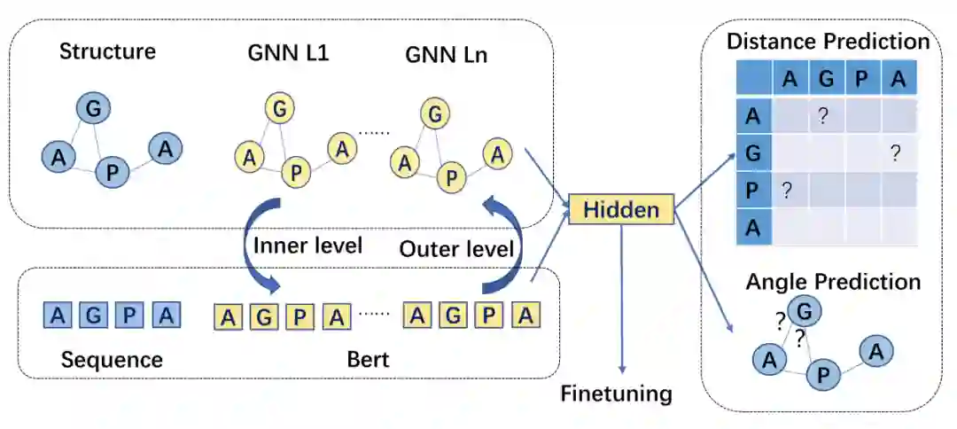 为此,作者提出了一种新的蛋白质自监督学习方法来有效地捕捉蛋白质的结构信息。具体来讲,基于残基间距离和二面角设计了两个自监督学习任务并使用图神经网络来捕捉这些信息。更进一步,作者利用预训练好的蛋白质语言模型增强蛋白质结构的自监督学习,并且提出一种伪双层优化方案去保证蛋白质序列信息和结构信息的一致性。下游任务的实验验证了作者提出的方法的有效性。