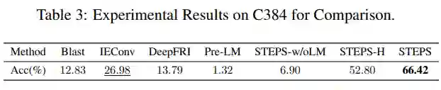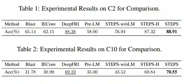 作者在膜蛋白分类任务(C2),细胞区室分类任务(C10),以及酶分类任务(C384)上验证了作者的方法STEPS的有效性。
