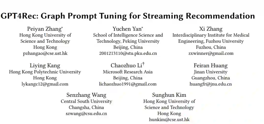 为了解决这些困难,我们提出了GPT4Rec,一种用于流式推荐的图提示微调方法。在不断演变的用户-物品交互图中,GPT4Rec首先将图模式解缠到多个视图中。在不同视图中隔离特定的交互模式和关系后,GPT4Rec利用轻量级图提示有效引导模型在用户-物品图中的不同交互模式中进行适应。首先,节点级提示用于指导模型适应图中各个节点属性或特性的变化。其次,结构级提示引导模型适应图中更广泛的连接和关系模式。最后,视图级提示创新性地设计用于促进从多个解缠视图中聚合信息。这些提示设计使GPT4Rec能够综合理解图结构,确保考虑并有效整合用户-物品交互的所有重要方面。