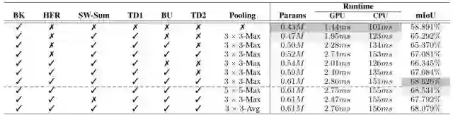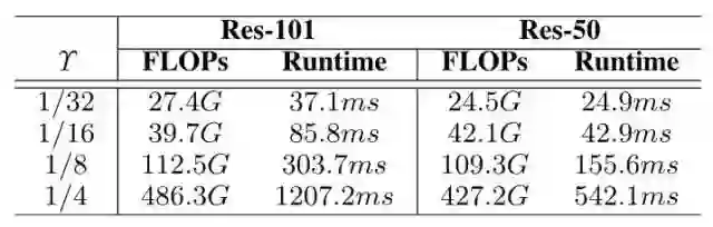 表1. 在神经网络中,特征图分辨率对于浮点运算量(FLOPs)和运行时间(Runtime)的影响。ϒ表示所维护的特征图分辨率和输入图片分辨率的比率。