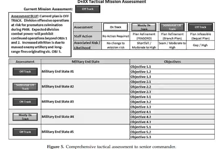 当前美国陆军条令中,尚未存在一个用于开发和执行战术评估流程以支持大规模作战行动的正式方法。现行条令描述了作战和战略层级的评估流程,并为整合到联合计划流程提供了通用指南。然而,现有的条令缺口导致评估流程和成果不一致,无法有效支持战术决策。因此,师和军评估小组缺乏一个完全明确的、用于将评估开发并整合到组织计划流程中的条令方法。基于现行条令和最佳实践,我们提供了一套方法,用于开发和整合战术评估框架与条令计划流程。本文方法概述了制定和执行战术评估计划的输入与输出,以实现在大规模作战行动中基于风险信息的决策制定。此战术评估方法与现行条令保持同步,并能适应全谱战术军事行动。该方法也支持强大且可重复的作战评估,从而有效为指挥官的决策提供信息。通过伴随作战计划同步构建评估框架,我们得以实现强大且相关的评估,从而改善决策制定,并增强美国陆军师和军级司令部之间的互操作性。