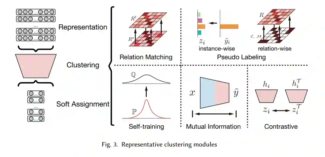 深度集群的基石。我们总结了深度聚类的两个基础模块,即表示学习模块和聚类模块。对于每个模块,我们强调了从现有方法中总结出的具有代表性和通用性的设计,这些设计很容易推广到新的模型中。