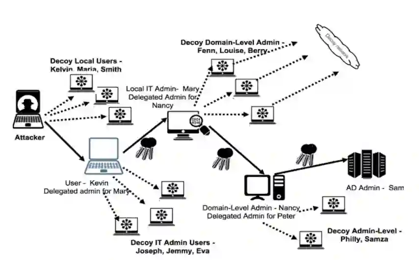 图 3. 特权升级与欺骗之间的部署。在这种情况下,攻击者被迫探索更大的网络。