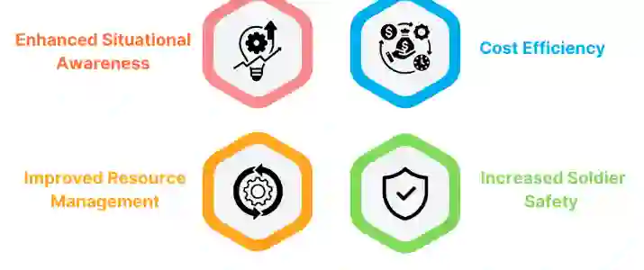 物联网(IoT)在国防领域的应用为现代军事行动带来了无与伦比的优势。这些优势包括增强战场感知、节约成本和改善士兵安全。以下是对这些关键优势的详细探讨: