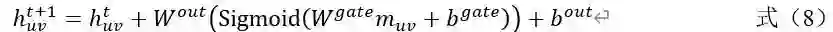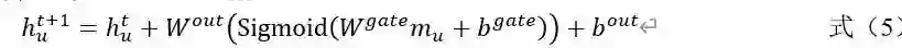 上述为非线性变化的权值和偏差,激活函数为ReLU。 最后通过连接门控单元转换原子特征。如公式(5)所示。